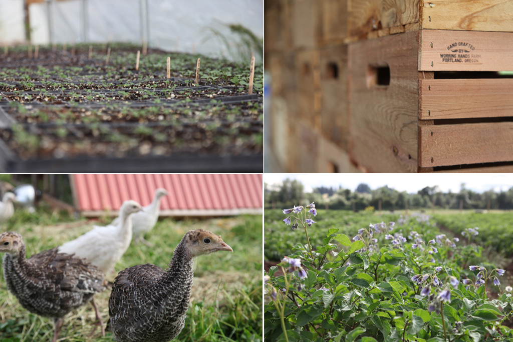 Sowing in the greenhouse begins, the turkeys are out on pasture and the potato flowers are poppin’.