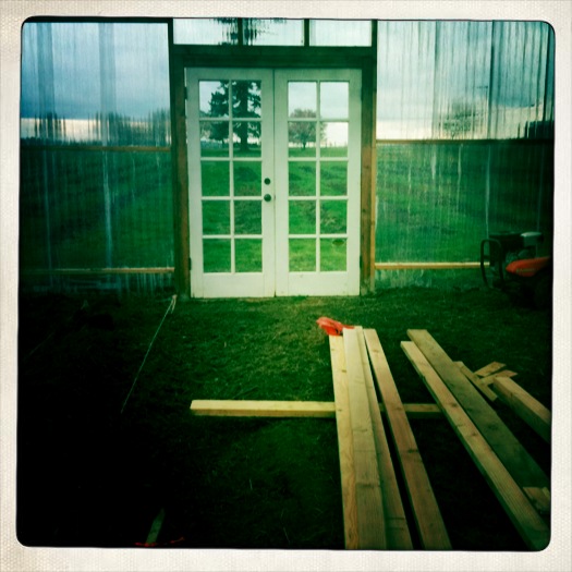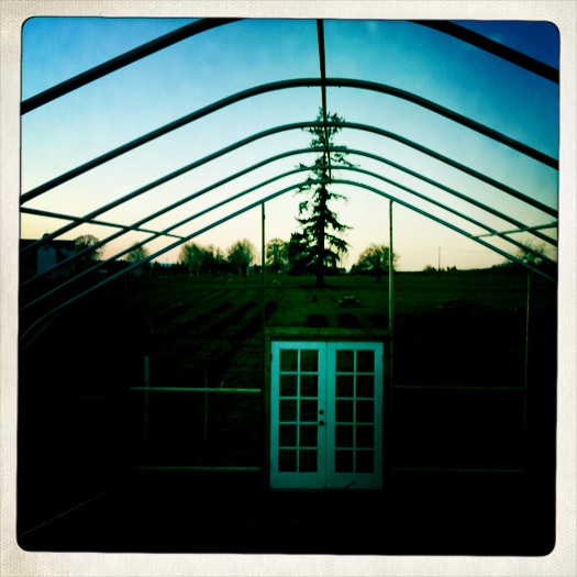 yesterday brian and i began construction on a little hoophouse. guided by the advice of our friend jose, pictures of hoophouses we found on the internet, (thanks mostly to wealth underground for the inspiration), and our collective tenacity to work through problems that arose (read: miscalculations, obstinance, wind!!, and tender hearts), we emerged victorious.